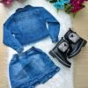 CONJUNTO JEANS COMPOSTO POR JAQUETA/CASACO JEANS E SAIA JEANS