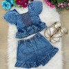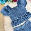 TECIDO: JEANS PEITO DETALHADO COM STRASSO TOM DO JEANS PODE VARIAR DE ACORDO COM O LOTE * Medidas podem variar em até 4cm. * Tiara vendida separadamente, disponível em nosso site na categoria acessórios. * Calçados vendido separadamente, disponível em nosso site na categoria calçados. * LEMBRANDO QUE PODERA HAVER VARIAÇÃO DE TONALIDADE DO PRODUTO DEPENDENDO DA TELA DO SEU DISPOSITIVO
