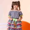 Confeccionado em tecido misto possui forro em poliéster e algodão para não incomodar a criança e proporcionando um caimento incrível e sofisticado, possui gola redonda, comprimento médio, mangas curtas, possui elástico na cintura para melhor ajuste e blusinha com elástico nas costas para ajustar a parte posterior do conjunto completando o look dos sonhos!