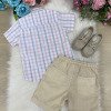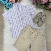 Esse conjunto é a escolha perfeita para os meninos que amam se vestir com estilo e conforto, ideal para aniversários, passeios, eventos e momentos especiais ao ar livre. Camisa:Confeccionada em tecido tipo linho 45% algodão e 55% poliester, na cor Branca , possui modelagem moderna com mangas curtas, gola clássica, bolsinho frontal e botões em tom amadeirado, que trazem um toque artesanal e sofisticado. Bermuda:Acompanha bermuda bege de linho com cós elástico e cordão de ajuste 70% poliester, 16% viscose, 11% linho, 3% algodão, garantindo conforto e praticidade. O tecido leve e de toque suave proporciona liberdade de movimento, ideal para dias mais quentes. Destaques: Tecido leve e confortável tipo linho Modelagem moderna e elegante Cós com elástico e cordão regulável Ideal para eventos casuais ou festas ao ar livre Cores neutras e combináveis com diferentes calçados Sugestão de uso: Combine com mocassim ou sandálias infantis para um look completo e encantador! Perfeito para:Batizados, casamentos diurnos, ensaios fotográficos, festas de aniversário e momentos em família.