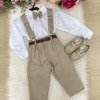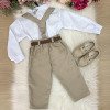 Conjunto Meninos Miss Cherry Leo Suspensorio Bege