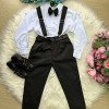 TECIDO: CAMISA BRANCA MANGA LONGA MICROFIBRA 100% POLIESTER TECIDO DA CALÇA TWILL COLORIDO 100% POLIESTER Conjunto composto por: Camisa social na cor Branca manga longa, gravata borboleta calça na cor PRETO, suspensorio PRETO Cinto PRETO Demais peças ou acessórios, não inclusos. Calçados Vendindos Separadamente * LEMBRANDO QUE PODERA HAVER VARIAÇÃO DE TONALIDADE DO PRODUTO DEPENDENDO DA TELA DO SEU DISPOSITIVO
