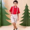 Conjunto Infantil Social Henry – Miss Cherry  Deixe o pequeno cheio de charme e elegância com este conjunto infantil perfeito para ocasiões especiais! Composição do look: Camisa vermelha de manga curta com botões frontais; Shorts bege social; Suspensório bege ajustável; Gravata borboleta bege, dando o toque clássico ao visual. Tecido Camisa Linho 100% Algodão Tecido Shorts Twill Colorido 100% PoliesterDestaques do produto: Conjunto fresquinho e confortável, ideal para festas, aniversários, casamentos e batizados; Combinação moderna e delicada, que valoriza o estilo infantil sem abrir mão da sofisticação; Produzido em tecido leve e macio, pensado para o bem-estar da criança. Perfeito para registrar momentos únicos com muito estilo e elegância!  Informações Importantes As medidas podem variar em até 2cm. Recomendamos sempre consultar a tabela de medidas antes da compra para evitar erros. Calçado vendido separadamente, disponível na categoria Calçados As cores do produto podem sofrer variações de tonalidade conforme a configuração da tela do seu dispositivo.