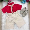 Conjunto Miss Cherry Henry Vermelho Suspensorio Bege