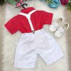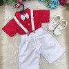 Conjunto Miss Cherry Henry Vermelho Suspensorio Branco