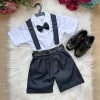 Conjunto composto por: Camisa social na cor Branca manga curta, gravata azul marinho, short na cor azul marinho, suspensorio azul marinho e cinto.