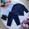 Conjunto composto por: Camisa social na cor branca manga Longa, gravata borboleta Azul marinho, cinto, Calça na cor Azul Marinho e blaizer na cor Azul Marinho Material: Linho Demais peças ou acessórios, não inclusos. Calçados Vendindos Separadamente * LEMBRANDO QUE PODERA HAVER VARIAÇÃO DE TONALIDADE DO PRODUTO DEPENDENDO DA TELA DO SEU DISPOSITIVO
