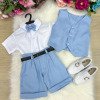 TECIDO: CAMISA BRANCA MICROFIBRA 100% POLIESTERTECIDO DO SHORTS TWILL COLORIDO 100% POLIESTER Conjunto composto por: Camisa social na cor Branca, gravata borboleta AZUL BEBÊ shorts na cor AZUL BEBÊ, Colete AZUL BEBÊ e Cinto PRETO Demais peças ou acessórios, não inclusos. Calçados Vendindos Separadamente * LEMBRANDO QUE PODERA HAVER VARIAÇÃO DE TONALIDADE DO PRODUTO DEPENDENDO DA TELA DO SEU DISPOSITIVO