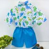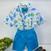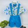 Conjunto composto por: Camisa Personagem, Shorts com suspensorio e gravata borboleta na cor Azul Tiffany.