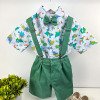 Conjunto composto por: Camisa Personagem, Shorts com suspensorio e gravata borboleta na cor Azul Tiffany.