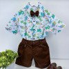 Conjunto composto por: Camisa Personagem, Shorts com suspensorio e gravata borboleta na cor Azul Tiffany.
