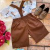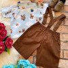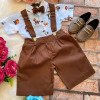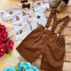 Conjunto composto por: Camisa Personagem, Shorts com suspensorio e gravata borboleta na cor Marrom. Demais peças ou acessórios, não inclusos.