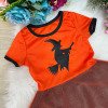 Fantasia Temática Halloween – Bruxinha Laranja com Tule Encante a criançada neste Halloween com essa fantasia super estilosa e divertida!O modelo traz a magia da data com estampa de bruxinha voando na parte superior e saia de tule laranja com brilho, sobreposta a tecido preto que dá um charme extra. O acabamento com gola preta e mangas curtinhas deixa o look ainda mais gracioso e confortável. Destaques do modelo: Fantasia temática Halloween Estampa de bruxinha Saia com tule laranja brilhante sobre tecido preto Gola e mangas com acabamento preto Confortável e cheia de movimento Ideal para festas, eventos escolares, truques ou travessuras e sessões de fotos inesquecíveis! Informações Importantes As medidas podem variar em até 2cm. Recomendamos sempre consultar a tabela de medidas antes da compra para evitar erros. Cuidado ao vestir: não forçar a entrada ou puxar o tecido, pois pode esgarçar a costura ➝ Não realizaremos troca por mau uso. Tiara e outros acessórios não acompanham o produto, mas estão disponíveis em nosso site. Calçado vendido separadamente, disponível na categoria Calçados. As cores do produto podem sofrer variações de tonalidade conforme a configuração da tela do seu dispositivo.