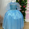 TECIDO 100% POLIÉSTER Vestido confeccionado em cetim com saia em tule glitter, proporcionando brilho delicado e visual encantador. A peça acompanha capa temática, completando o look para uma verdadeira aventura congelante. Inspirado no universo Frozen – com referências a Elsa, Anna, Olaf e o mundo de gelo – é perfeito para festas, aniversários e momentos especiais. Possui forro interno em poliéster e algodão, pensado para não incomodar a criança e garantir conforto durante o uso. O modelo conta com: Gola redonda Mangas curtas Comprimento longo Saia com glitter Acompanha capa Caimento sofisticado e confortável, feito para encantar sem abrir mão da praticidade. CUIDADOS COM O PRODUTO Produto delicado. Requer cuidados especiais no uso e na lavagem. Lavar somente à mão Não lavar na máquina Evitar forçar ao vestir ou puxar o tecido com força, pois pode esgarçar a costuraEm casos de dano por uso inadequado, não realizamos troca INFORMAÇÕES IMPORTANTES As medidas podem variar em até 4 cm Para um efeito mais armado, recomendamos o uso de saiote ou anágua  Tiara vendida separadamente Calçados vendidos separadamente Pode haver variação de tonalidade conforme a tela do dispositivo