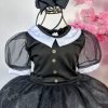 Confeccionado em tecido misto possui forro em poliéster e algodão para não incomodar a criança e proporcionando um caimento incrível e sofisticado, possui gola redonda, comprimento médio, mangas curtas.