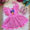 Confeccionado em tecido misto possui forro em poliéster e algodão para não incomodar a criança e proporcionando um caimento incrível e sofisticado, possui gola redonda, comprimento médio, mangas curtas, possui elástico nas costas para melhor ajuste, acabamento com lindo laço na parte posterior do vestido completa o look dos sonhos!