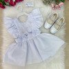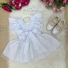 Confeccionado em tecido misto possui forro em poliéster e algodão para não incomodar a criança e proporcionando um caimento incrível e sofisticado, possui gola redonda, comprimento médio, mangas curtas, possui elástico nas costas para melhor ajuste, acabamento com lindo laço na parte posterior do vestido completa o look dos sonhos!
