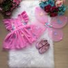 Confeccionado em tecido misto possui forro em poliéster e algodão para não incomodar a criança e proporcionando um caimento incrível e sofisticado, possui gola redonda, comprimento médio, mangas curtas, possui elástico nas costas para melhor ajuste, acabamento com lindo laço na parte posterior do vestido completa o look dos sonhos!
