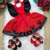Confeccionado em tecido misto possui forro em poliéster e algodão para não incomodar a criança e proporcionando um caimento incrível e sofisticado, possui gola redonda, comprimento médio, mangas curtas, possui elástico nas costas para melhor ajuste, acabamento com lindo laço na parte posterior do vestido completa o look dos sonhos!