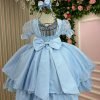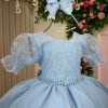 Confeccionado em tecido misto possui forro em poliéster e algodão para não incomodar a criança e proporcionando um caimento incrível e sofisticado, possui gola redonda, comprimento médio, mangas curtas, possui elástico nas costas para melhor ajuste, acabamento com lindo laço na parte posterior do vestido completa o look dos sonhos!