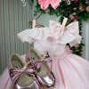 O Vestido Martina foi pensado para deixar as pequenas ainda mais encantadoras, unindo conforto, elegância e aquele toque de conto de fadas. Detalhes que encantam: Busto em lese bordado, com delicados desenhos florais, trazendo textura e romantismo à peça; Decote com babado duplo e acabamento delicado, que valoriza o caimento e adiciona volume suave; Alças finas fixas, que garantem sustentação sem perder a leveza do modelo; Laço lateral grande com aplicação de strass, dando um toque de brilho sutil e sofisticado; Cinto de pérolas aplicada na cintura, realçando a silhueta e complementando o visual com um ar clássico; Saia dupla com camada de tule suave, proporcionando leve volume e fluidez ao andar; Forro interno macio, garantindo conforto durante todo o uso; Costas com lastex, o que permite um ajuste perfeito ao corpo e maior liberdade de movimento; Laço grande nas costas, finalizando com charme e elegância, ideal para fotos e momentos especiais. Composição: Corpo: Tecnosport 100% Poliéster Busto: Lese 100% Poliéster Forro: Poliéster macio e respirável 100% poliester Perfeito para: Festas e aniversários Batizados Ensaios fotográficos Eventos formais e especiais Informações Importantes As medidas podem variar em até 2cm. Recomendamos sempre consultar a tabela de medidas antes da compra para evitar erros. Para um volume extra, indicamos o uso de saiote de armação, vendido separadamente na categoria Acessórios. Tiara e outros acessórios não acompanham o produto, mas estão disponíveis em nosso site. Calçado vendido separadamente, disponível na categoria Calçados As cores do produto podem sofrer variações de tonalidade conforme a configuração da tela do seu dispositivo.