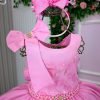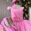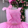 Confeccionado em tecido misto possui forro em poliéster e algodão para não incomodar a criança e proporcionando um caimento incrível e sofisticado, possui gola redonda, comprimento médio, mangas curtas, possui elástico nas costas para melhor ajuste, acabamento com lindo laço na parte posterior do vestido completa o look dos sonhos!