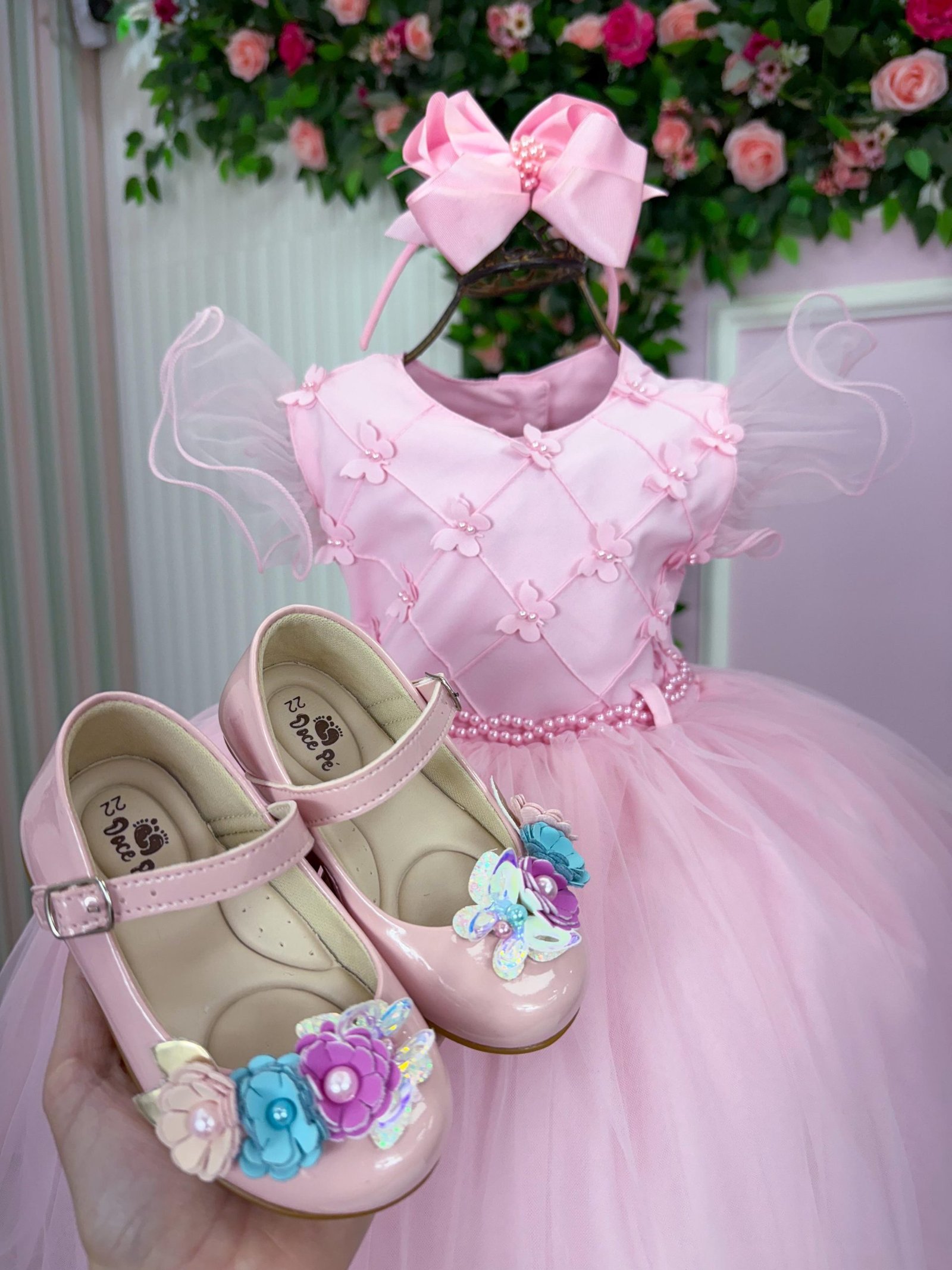 Confeccionado em tecido misto possui forro em poliéster e algodão para não incomodar a criança e proporcionando um caimento incrível e sofisticado, possui gola redonda, comprimento médio, mangas curtas, possui elástico nas costas para melhor ajuste, acabamento com lindo laço na parte posterior do vestido completa o look dos sonhos!
