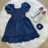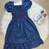 Confecionado em tecido JEANS proporcionando um caimento incrível e sofisticado, possui gola redonda, comprimento médio, mangas curta possui elástico nas costas para melhor ajuste, completa o look dos sonhos!