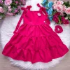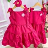 Vestido Blogueirinha Mãe e Filha Nina Pink  Um look encantador para celebrar momentos especiais com ainda mais estilo!Confeccionado em tecido leve e sofisticado, o vestido traz gola redonda, modelagem confortável, detalhe de elástico nas costas para melhor ajuste e um caimento impecável.A cor Pink vibrante garante modernidade e delicadeza, perfeita para marcar presença em festas, aniversários, ensaios fotográficos ou passeios cheios de charme. Disponível nas versões Mãe e Filha, permitindo combinar e viver momentos únicos juntas.  Acompanha laço de cabelo para completar o visual infantil.    Conforto, elegância e muito estilo em um só vestido!   * Vestido mãe e filha vendidos separadamente