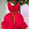 TECIDO: TECNHO LIGTH BASIC 100%POLIESTERConfeccionado em tecido misto possui forro em poliéster e algodão para não incomodar a criança e proporcionando um caimento incrível e sofisticado, possui gola redonda, comprimento médio, mangas curtas, possui elástico nas costas para melhor ajuste, acabamento com lindo laço na parte posterior do vestido completa o look dos sonhos! * Medidas podem variar em até 4cm * Caso queira o vestido mais armado, recomendamos o uso do saiote ou anágua de armação, disponível no nosso site na categoria acessórios. * Tiara vendida separadamente, disponível em nosso site na categoria acessórios. * Calçados vendido separadamente, disponível em nosso site na categoria calçados. * LEMBRANDO QUE PODERA HAVER VARIAÇÃO DE TONALIDADE DO PRODUTO DEPENDENDO DA TELA DO SEU DISPOSITIVO