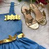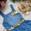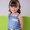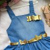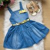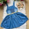 TECIDO JEANS: 100% ALGODÃOACOMPANHA CINTOConfeccionado em tecido misto possui forro em poliéster e algodão para não incomodar a criança e proporcionando um caimento incrível e sofisticado, possui gola redonda, comprimento médio, mangas curtas, possui elástico nas costas para melhor ajuste, acabamento com lindo laço na parte posterior do vestido completa o look dos sonhos! * Medidas podem variar em até 4cm * Caso queira o vestido mais armado, recomendamos o uso do saiote ou anágua de armação, disponível no nosso site na categoria acessórios. * Tiara vendida separadamente, disponível em nosso site na categoria acessórios. * Calçados vendido separadamente, disponível em nosso site na categoria calçados. * LEMBRANDO QUE PODERA HAVER VARIAÇÃO DE TONALIDADE DO PRODUTO DEPENDENDO DA TELA DO SEU DISPOSITIVO