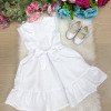 Um modelo clássico e encantador, feito para brilhar em momentos especiais.O vestido infantil valeria combina elegância e delicadeza em cada detalhe — ideal para festas, casamentos, batizados, aniversários e celebrações em família. Descrição detalhada: Modelagem: Vestido evasê com babado na barra, proporcionando movimento e volume na medida certa. Tecido: Techno ligth 100% poliester de alta qualidade, com leve brilho e toque macio, garantindo conforto e caimento perfeito. Detalhes: Aplicações de renda branca trabalhada, criando um visual romântico e delicado. Laço de pérolas no centro da cintura, com acabamento dourado e brilho elegante Fechamento com lastex, que se ajusta ao corpo da criança, oferecendo conforto e mobilidade. Laço para amarrar na cintura, ajustável e decorativo. Acabamento: Costuras reforçadas e acabamento premium, ideal para uso prolongado e eventos formais. Evitar puxar o lastex ou o tecido com força ao vestir.     Um vestido que une charme, qualidade e conforto — perfeito para transformar qualquer momento em um registro inesquecível! Informações Importantes  As medidas podem variar em até 2cm. Recomendamos sempre consultar a tabela de medidas antes da compra para evitar erros. Para um volume extra, indicamos o uso de saiote de armação, vendido separadamente na categoria Acessórios. Tiara e outros acessórios não acompanham o produto, mas estão disponíveis em nosso site. Calçado vendido separadamente, disponível na categoria Calçados As cores do produto podem sofrer variações de tonalidade conforme a configuração da tela do seu dispositivo.