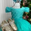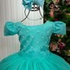Confeccionado em tecido misto possui forro em poliéster e algodão para não incomodar a criança e proporcionando um caimento incrível e sofisticado, possui gola redonda, comprimento médio, mangas curtas, apliques de perolás, contém, também, elástico nas costas para melhor ajuste, acabamento com lindo laço na parte posterior do vestido completa o look dos sonhos!