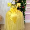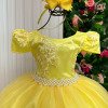 Confeccionado em tecido misto possui forro em poliéster e algodão para não incomodar a criança e proporcionando um caimento incrível e sofisticado, possui gola redonda, comprimento médio, mangas curtas, apliques de perolás, contém, também, elástico nas costas para melhor ajuste, acabamento com lindo laço na parte posterior do vestido completa o look dos sonhos!