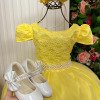 Vestido Enjoy Longo Laura Amarelo Rendado