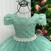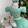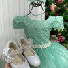 Confeccionado em tecido misto possui forro em poliéster e algodão para não incomodar a criança e proporcionando um caimento incrível e sofisticado, possui gola redonda, comprimento médio, mangas curtas, contém, também, elástico nas costas para melhor ajuste, acabamento com lindo laço na parte posterior do vestido completa o look dos sonhos!