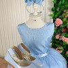 Vestido Longo Coleção Regata Um modelo sofisticado, cheio de elegância e encanto, perfeito para ocasiões especiais que pedem um look digno de princesa. Destaques do modelo: Tecido Tecnosport 100% poliester/ Saia e forro Cetim 100% poliester/ Tule 100% poliester Busto estruturado com aplicações de pérolas e brilhos delicados, formando desenhos sutis que dão um toque de luxo. Cinto de strass dourado, marcando a cintura com sofisticação. Saia longa e rodada em camadas de tule verde, garantindo volume e caimento impecável. Cor azul bebe sofisticado, tendência que traz modernidade ao estilo clássico. Um vestido que transmite charme, elegância e a beleza única da coleção Regata.  Informações Importantes As medidas podem variar em até 2cm. Recomendamos sempre consultar a tabela de medidas antes da compra para evitar erros. Para um volume extra, indicamos o uso de saiote de armação, vendido separadamente na categoria Acessórios. Tiara e outros acessórios não acompanham o produto, mas estão disponíveis em nosso site. Calçado vendido separadamente, disponível na categoria Calçados. As cores do produto podem sofrer variações de tonalidade conforme a configuração da tela do seu dispositivo.