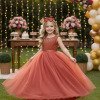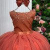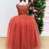 Vestido Longo Coleção Regata Um modelo sofisticado, cheio de elegância e encanto, perfeito para ocasiões especiais que pedem um look digno de princesa. Destaques do modelo: Tecido Tecnosport 100% poliester/ Saia e forro Cetim 100% poliester/ Tule 100% poliester Busto estruturado com aplicações de pérolas e brilhos delicados, formando desenhos sutis que dão um toque de luxo. Cinto de strass dourado, marcando a cintura com sofisticação. Saia longa e rodada em camadas de tule verde, garantindo volume e caimento impecável. Cor terracota sofisticado, tendência que traz modernidade ao estilo clássico. Um vestido que transmite charme, elegância e a beleza única da coleção Regata. Informações Importantes As medidas podem variar em até 2cm. Recomendamos sempre consultar a tabela de medidas antes da compra para evitar erros. Para um volume extra, indicamos o uso de saiote de armação, vendido separadamente na categoria Acessórios. Tiara e outros acessórios não acompanham o produto, mas estão disponíveis em nosso site. Calçado vendido separadamente, disponível na categoria Calçados. As cores do produto podem sofrer variações de tonalidade conforme a configuração da tela do seu dispositivo.