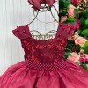 Confeccionado em tecido misto possui forro em poliéster e algodão para não incomodar a criança e proporcionando um caimento incrível e sofisticado, possui gola redonda, comprimento médio, mangas curtas, possui elástico nas costas para melhor ajuste, e acabamento com lindo laço na parte posterior do vestido completa o look dos sonhos!