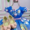 Confeccionado em tecido misto possui forro em poliéster e algodão para não machucar a criança e proporcionando um caimento incrível e sofisticado, possui gola redonda, comprimento médio, mangas curtas, possui elástico nas costas para melhor ajuste, acabamento com lindo laço na parte posterior do vestido completa o look dos sonhos! <a href=”http://bellikids.com.br/wp-content/uploads/2022/07/img-7124-11.jpg”></a> * Medidas podem variar em até 2cm * Caso queira o vestido mais armado, recomendamos o uso do saiote ou anágua de armação, disponível no nosso site na categoria acessórios.* Tiara vendida separadamente, disponível em nosso site na categoria acessórios.