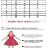 Confeccionado em tecido misto possui forro em poliéster e algodão para não incomodar a criança e proporcionando um caimento incrível e sofisticado, possui comprimento médio,sem mangas,possui elástico nas costas para melhor ajuste, alças de amarrar completa o look dos sonhos!