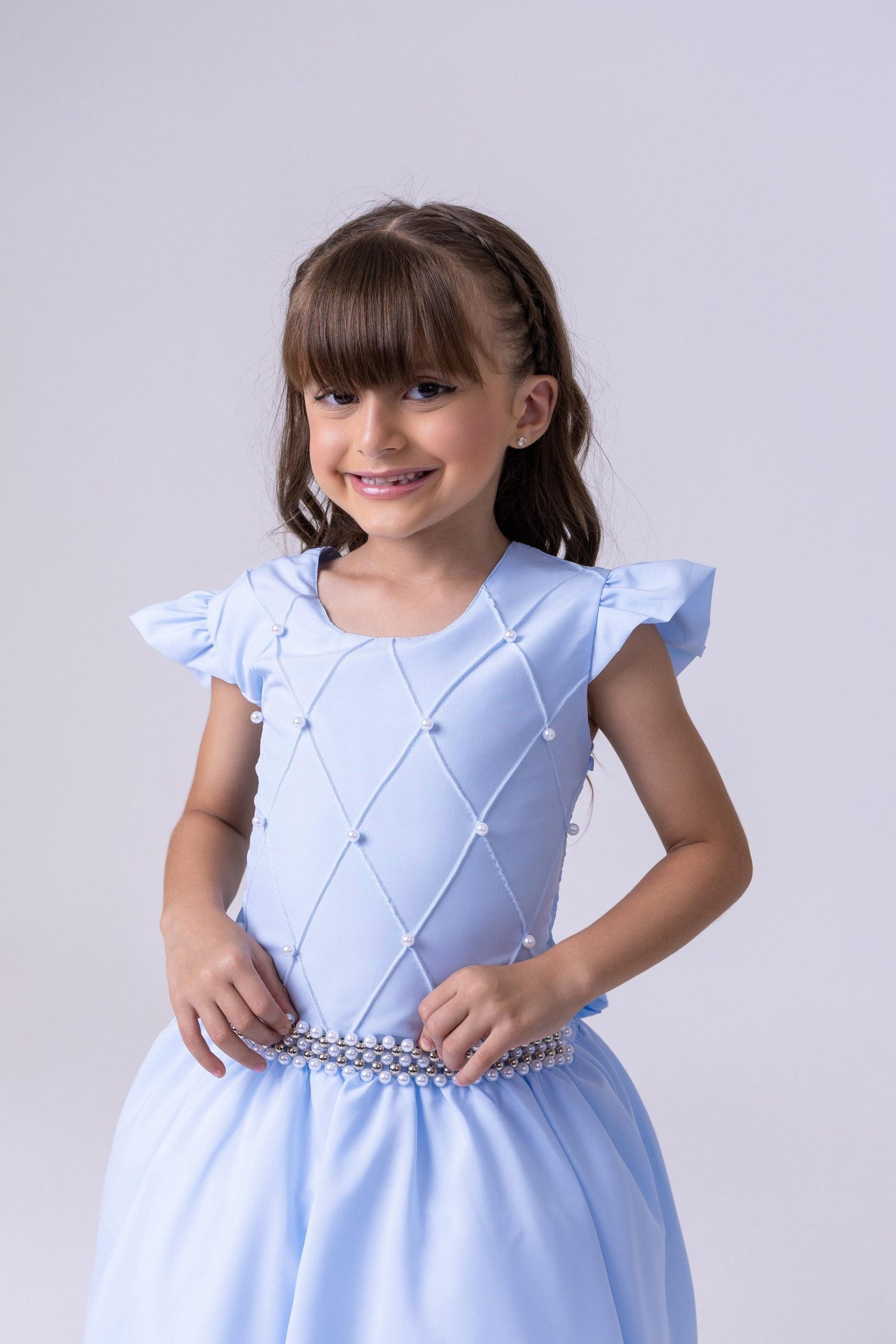 Confeccionado em tecido misto possui forro em poliéster e algodão para não incomodar a criança e proporcionando um caimento incrível e sofisticado, possui gola redonda, comprimento médio, mangas curtas, possui elástico nas costas para melhor ajuste, acabamento com lindo laço na parte posterior do vestido completa o look dos sonhos!