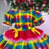 Vestido Infantil Junino  Confeccionado em tecido Tecnosport, esse vestido oferece um caimento impecável, sofisticado e confortável, perfeito para as comemorações mais queridas do ano. Um modelo que une o clássico das festas juninas com acabamento delicado e bem estruturado. Detalhes do modelo• Tecido principal: 100% Poliéster (Tecnosport Plus)• Forro do corpo: 100% Poliéster• Forro da saia: 100% PoliésterIdeal paraFestas Juninas e Julinas, apresentações escolares, quadrilha, São João e eventos temáticos no estilo caipira.     Informações Importantes  As medidas podem variar em até 2cm. Recomendamos sempre consultar a tabela de medidas antes da compra para evitar erros.  Tecido 100% poliester Para um volume extra, indicamos o uso de saiote de armação, vendido separadamente na categoria Acessórios. Tiara e outros acessórios não acompanham o produto, mas estão disponíveis em nosso site. Calçado vendido separadamente, disponível na categoria Calçados