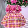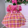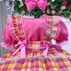 Vestido Infantil Junino – Salopete Confeccionado em tecido Tecnosport Plus, esse vestido oferece um caimento impecável, sofisticado e confortável, perfeito para as comemorações mais queridas do ano. Um modelo que une o clássico das festas juninas com acabamento delicado e bem estruturado. salopete é composta por uma blusinha e uma jardineira Detalhes do modelo • Tecido principal: 100% Poliéster (Tecnosport Plus)• Forro do corpo: 100% Poliéster• Forro da saia: 100% Poliéster Ideal paraFestas Juninas e Julinas, apresentações escolares, quadrilha,Mãe e filha, Conjunto, São João e eventos temáticos no estilo caipira. Informações Importantes As medidas podem variar em até 2cm. Recomendamos sempre consultar a tabela de medidas antes da compra para evitar erros. Tecido 100% poliester Para um volume extra, indicamos o uso de saiote de armação, vendido separadamente na categoria Acessórios. Tiara e outros acessórios não acompanham o produto, mas estão disponíveis em nosso site. Calçado vendido separadamente, disponível na categoria Calçados As cores do produto podem sofrer variações de tonalidade conforme a configuração da tela do seu dispositivo.