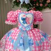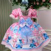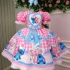 Vestido Junino Tematico Luxo Lilo Stitch Rosa Bebe