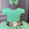 Confeccionado em tecido misto possui forro em poliéster e algodão para não incomodar a criança e proporcionando um caimento incrível e sofisticado, possui gola redonda, comprimento médio, mangas curtas, possui elástico nas costas para melhor ajuste, acabamento com lindo laço na parte posterior do vestido completa o look dos sonhos!