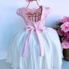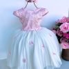 Confeccionado em tecido misto possui forro em poliéster e algodão para não machucar a criança e proporcionando um caimento incrível e sofisticado, possui gola redonda, comprimento médio, mangas curtas, possui elástico nas costas para melhor ajuste, acabamento com lindo laço na parte posterior do vestido completa o look dos sonhos!