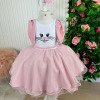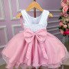 Confeccionado em tecido misto possui forro em poliéster e algodão para não incomodar a criança e proporcionando um caimento incrível e sofisticado, possui gola redonda, comprimento médio, mangas curtas, possui elástico nas costas para melhor ajuste, acabamento com lindo laço na parte posterior do vestido completa o look dos sonhos! * Medidas podem variar em até 4cm * Caso queira o vestido mais armado, recomendamos o uso do saiote ou anágua de armação, disponível no nosso site na categoria acessórios. * Tiara vendida separadamente, disponível em nosso site na categoria acessórios.