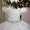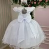 Confeccionado em tecido misto possui forro em poliéster e algodão para não incomodar a criança e proporcionando um caimento incrível e sofisticado, possui gola redonda, comprimento médio, mangas curtas, possui elástico nas costas para melhor ajuste, acabamento com lindo laço na parte posterior do vestido completa o look dos sonhos!