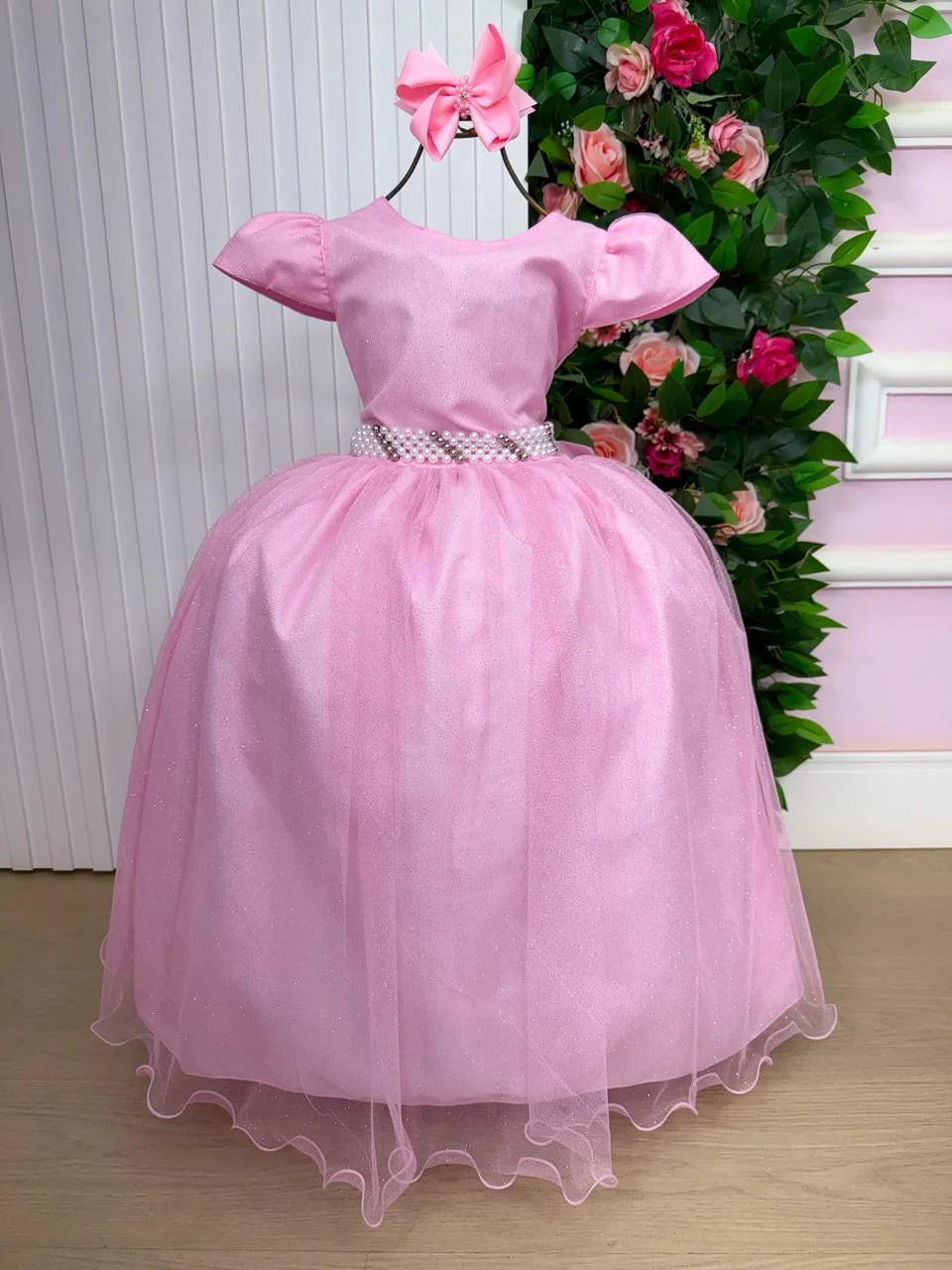 Confeccionado em tecido misto possui forro em poliéster e algodão para não incomodar a criança e proporcionando um caimento incrível e sofisticado, possui gola redonda, comprimento médio, mangas curtas, possui elástico nas costas para melhor ajuste, acabamento com lindo laço na parte posterior do vestido completa o look dos sonhos!